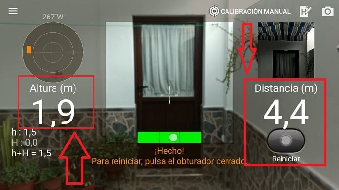 Ahora nuevamente ajustamos el punto de mira en la parte superior del objeto o cabeza de la persona. Veremos que ahora tenemos 2 valores.. A la derecha distancia del objeto y a la izquierda altura, pulsamos pues en «Obtener Altura».